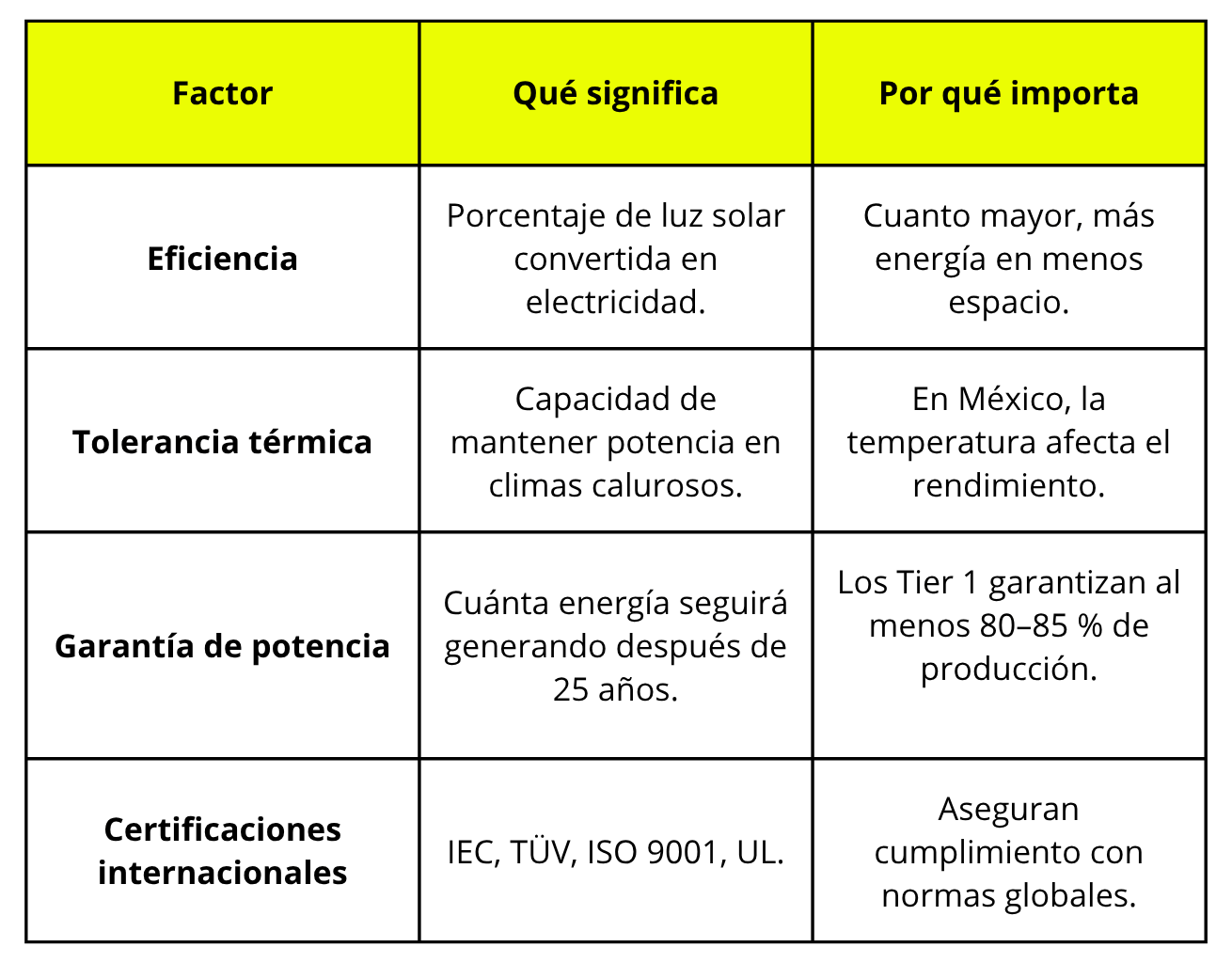 Para una empresa mexicana, elegir un sistema con paneles Tier 1 significa ahorros predecibles, garantías sólidas y tranquilidad por décadas.